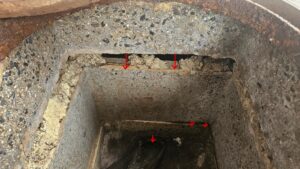 ↓実際にマンホールを開け、カメラを使って内部を確認したところ、