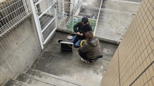 今回の調査は、その地面の下に埋まっている共用排水管について行ったものです。